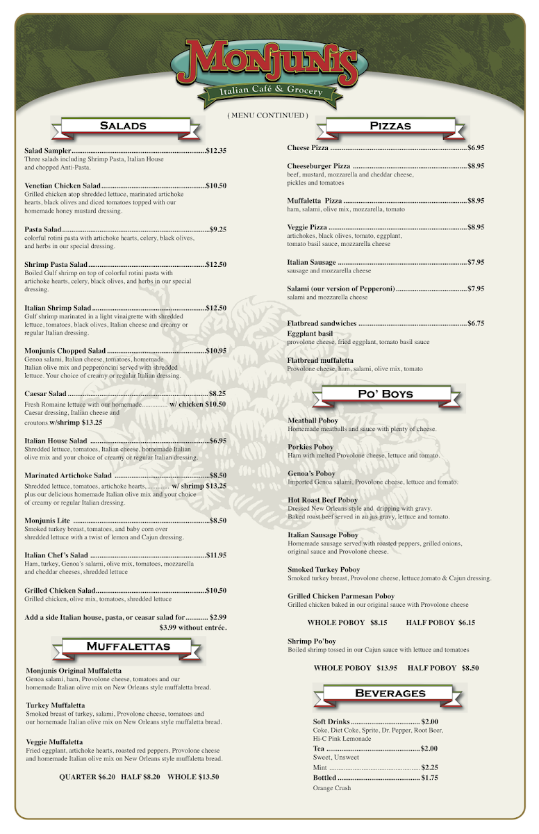 Genoa salami, ham, provolone cheese, tomatoes, and our homemade Italian olive mix on New Orleans-style muffuletta bread.