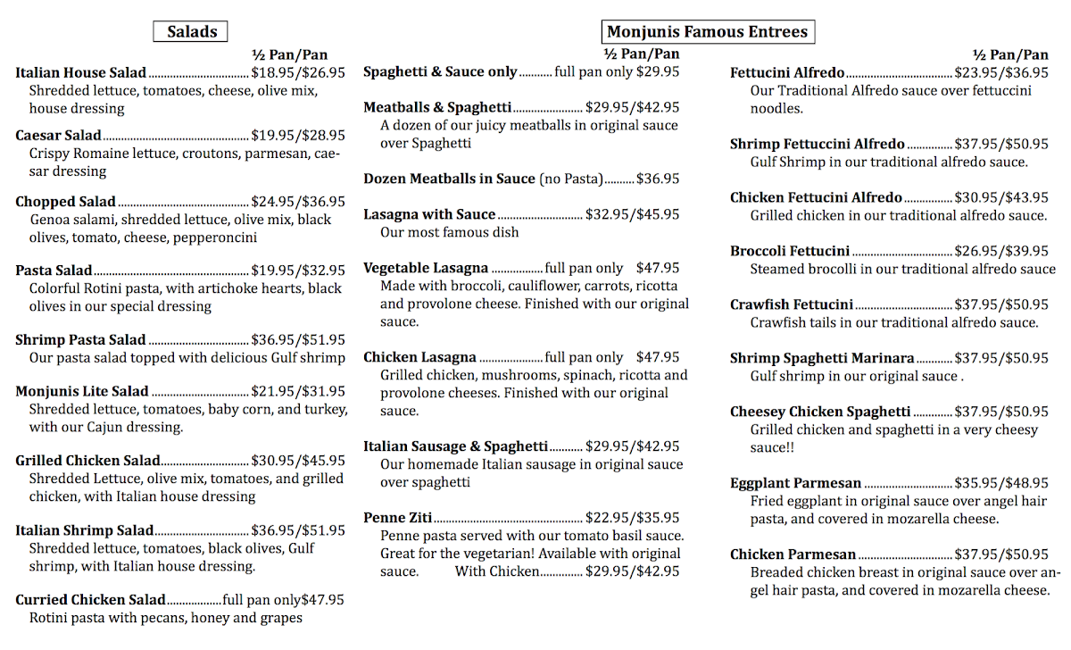 Gulf shrimp marinated in a light vinaigrette with shredded lettuce, tomatoes, black olives, Italian cheese, and creamy or regular Italian dressing.