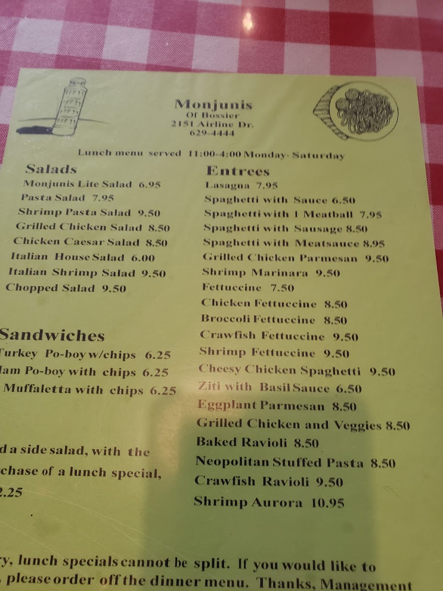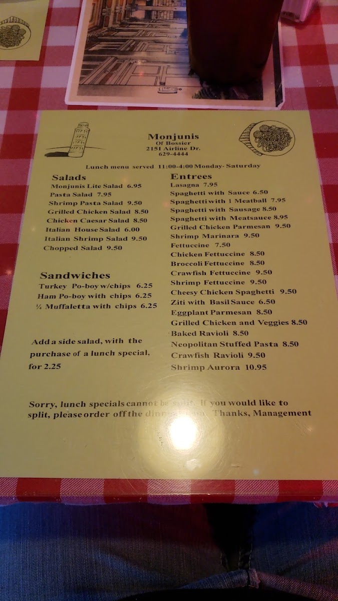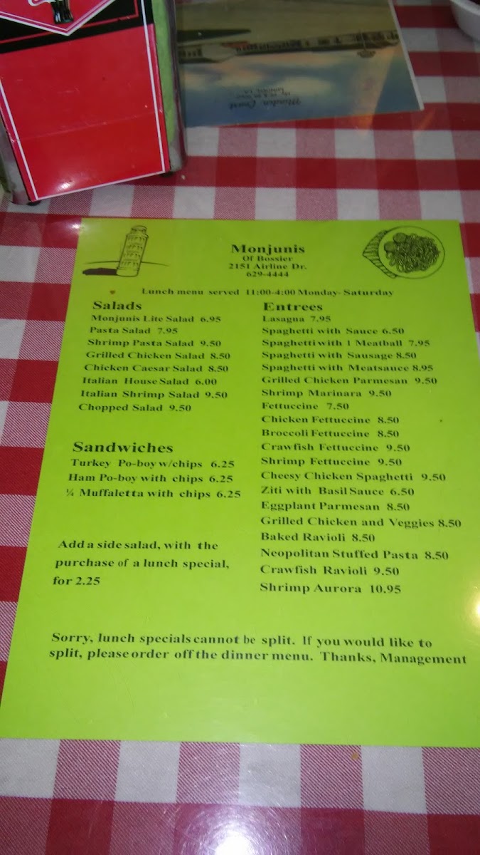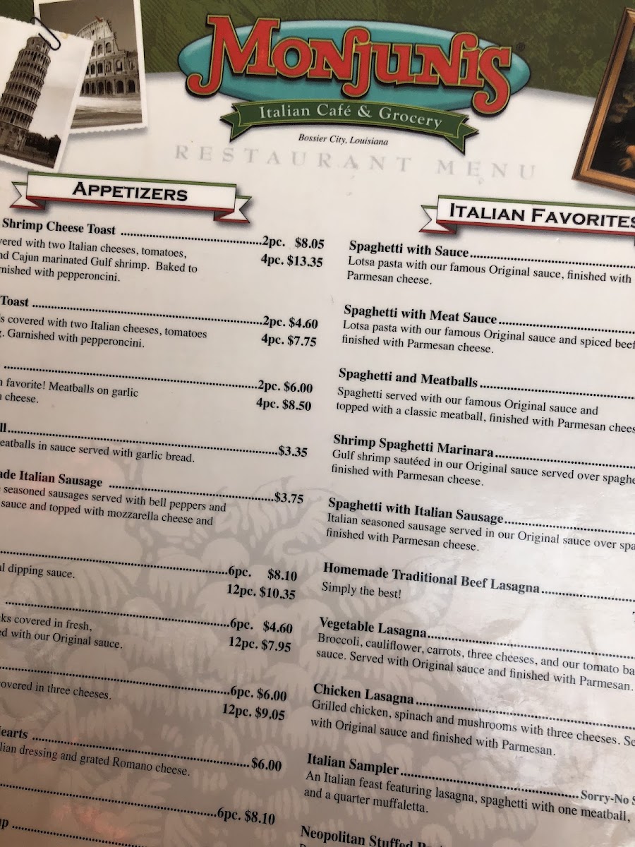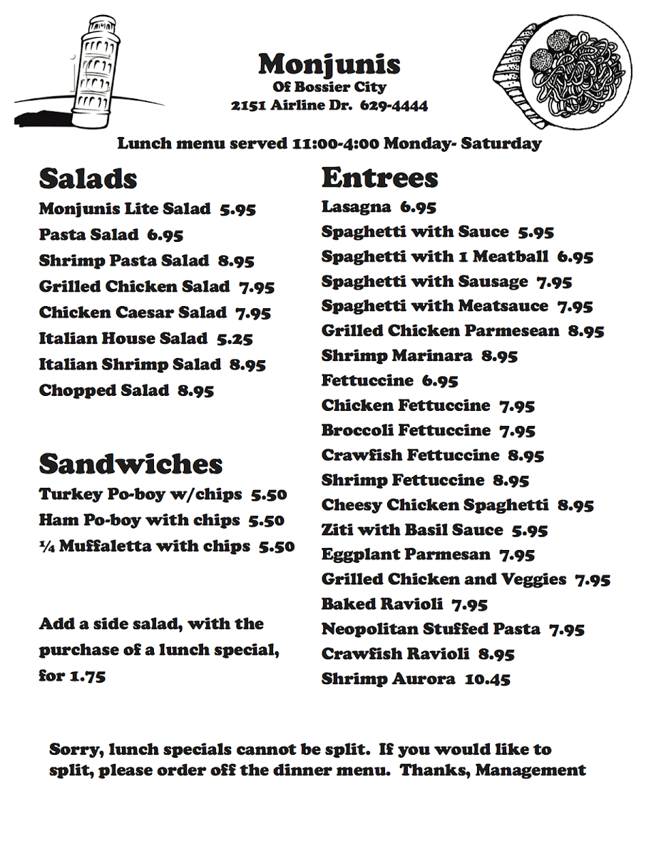 Sorry-no substitutions. An Italian feast featuring lasagna, spaghetti with one meatball, and a quarter muffaletta.